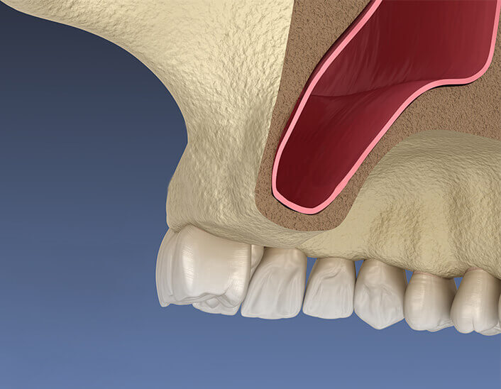 Wenn die oberen Zähne entfernt werden oder verloren gehen, verbleibt möglicherweise nur eine begrenzte Menge an Knochen zwischen der Kieferhöhle und dem Zahnfleisch. Für Zahnimplantate ist eine bestimmte Knochenmenge erforderlich. Zur Sicherstellung eines ausreichenden Knochenbestandes kann ein Sinuslift erforderlich sein, um den Implantaterfolg langfristig sicherzustellen.